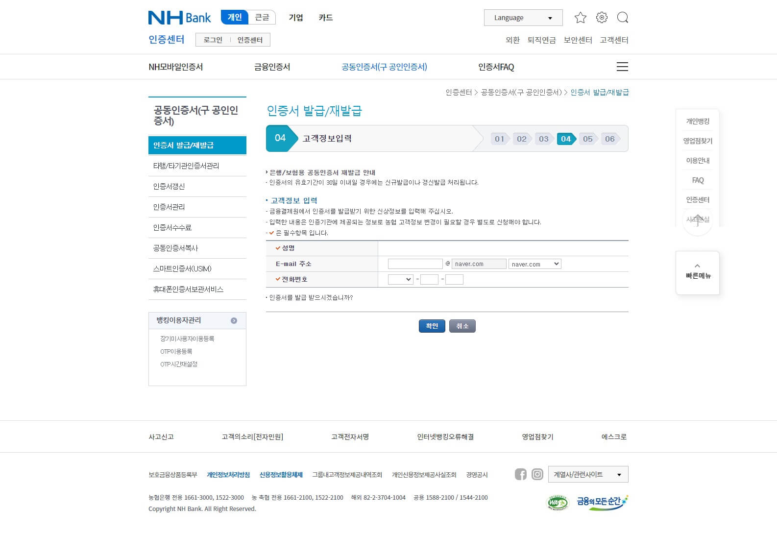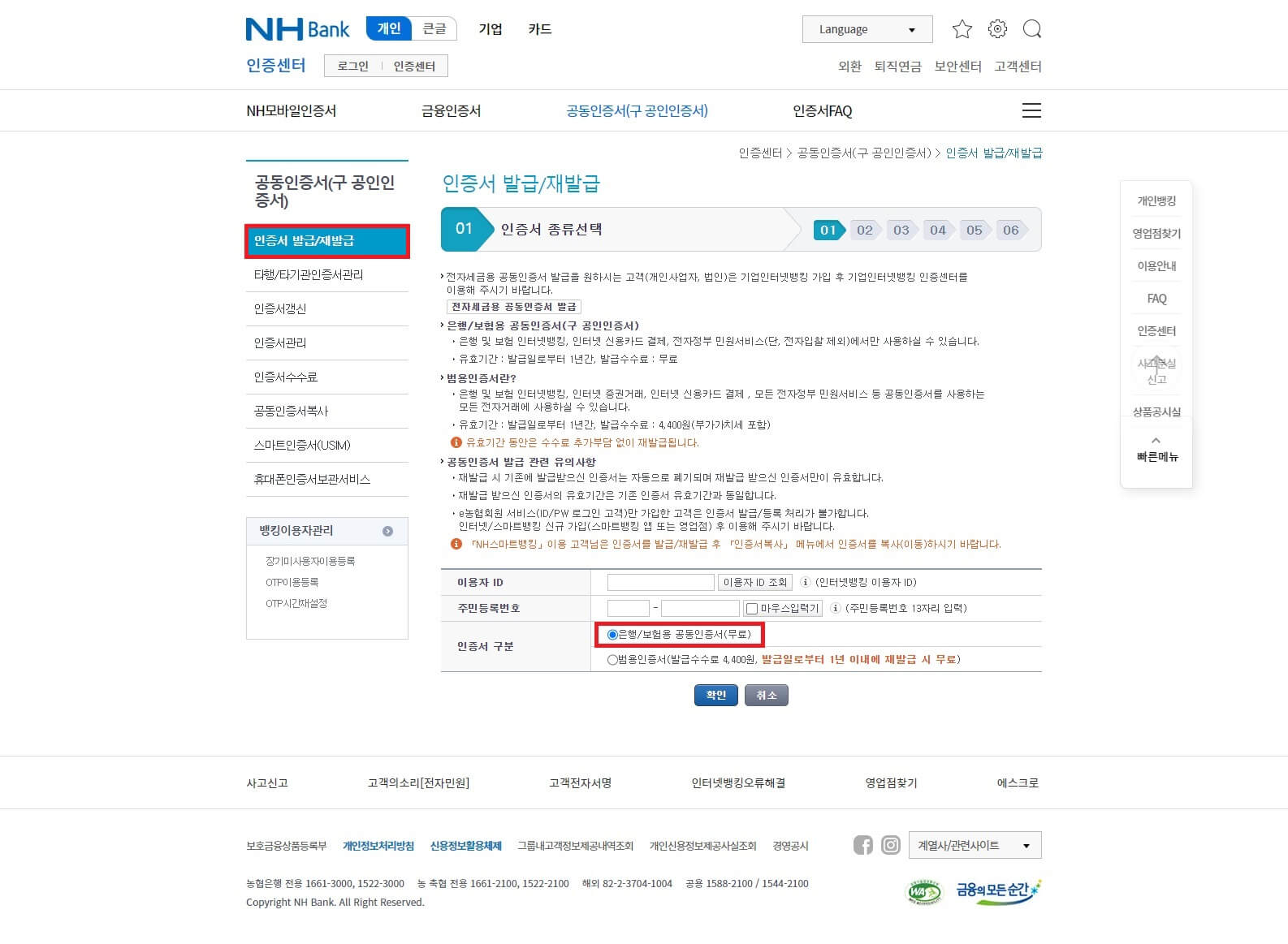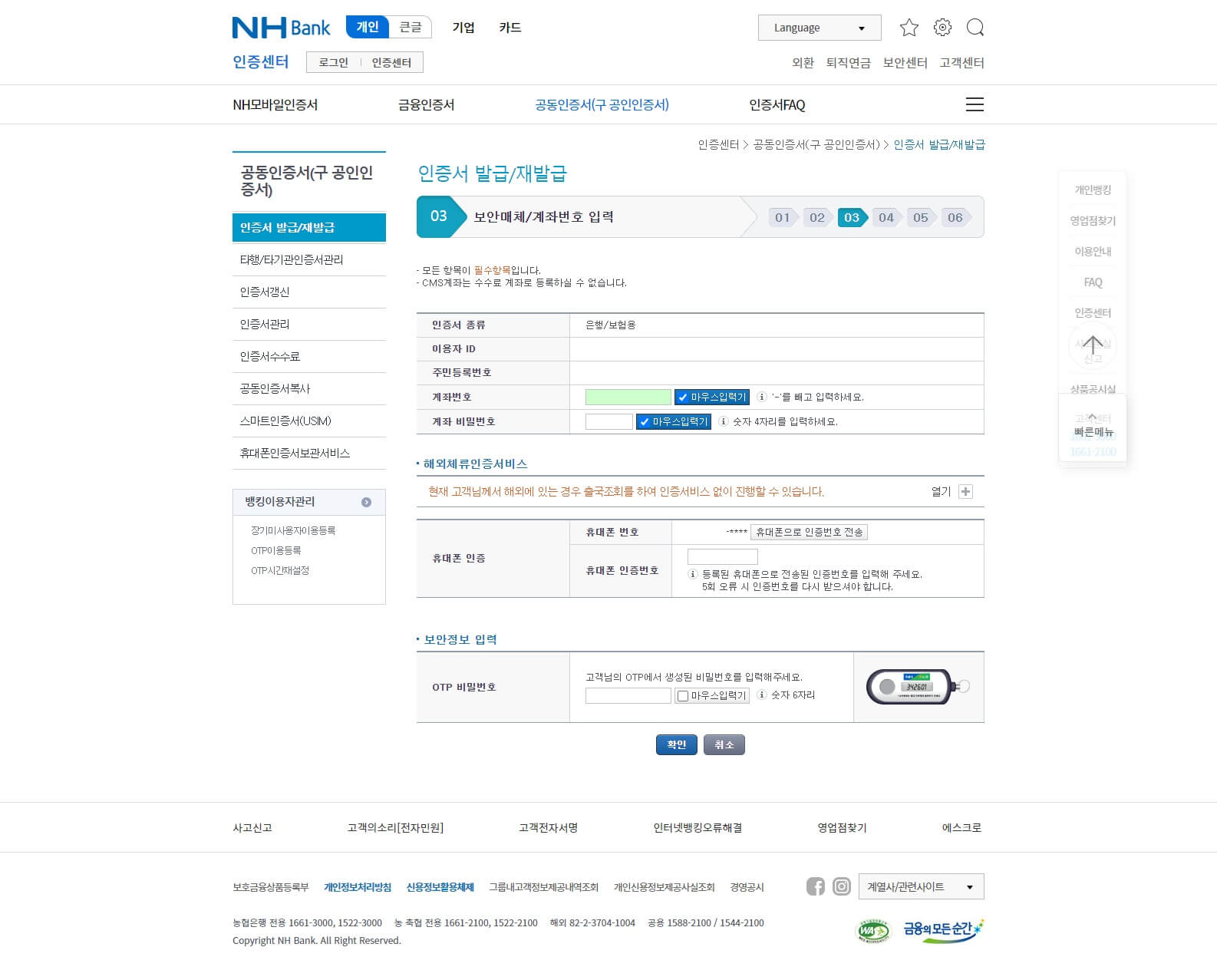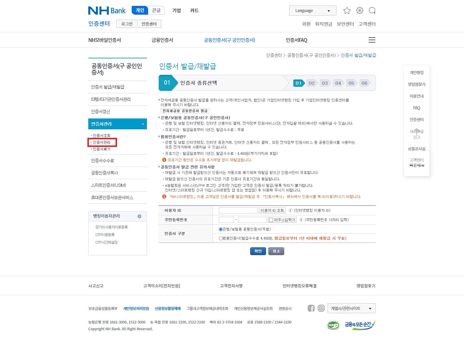 농협공인인증서 발급 및 재발급 방법
