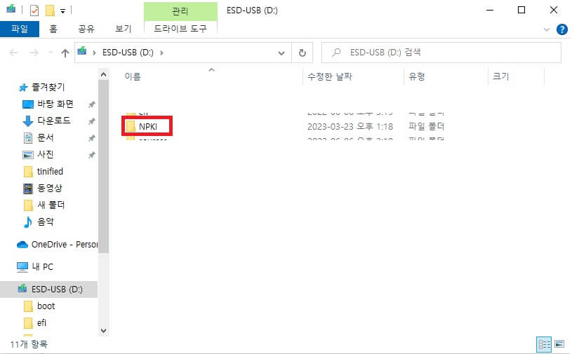 하드 디스크나 이동식 디스크에 인증서가 보이면