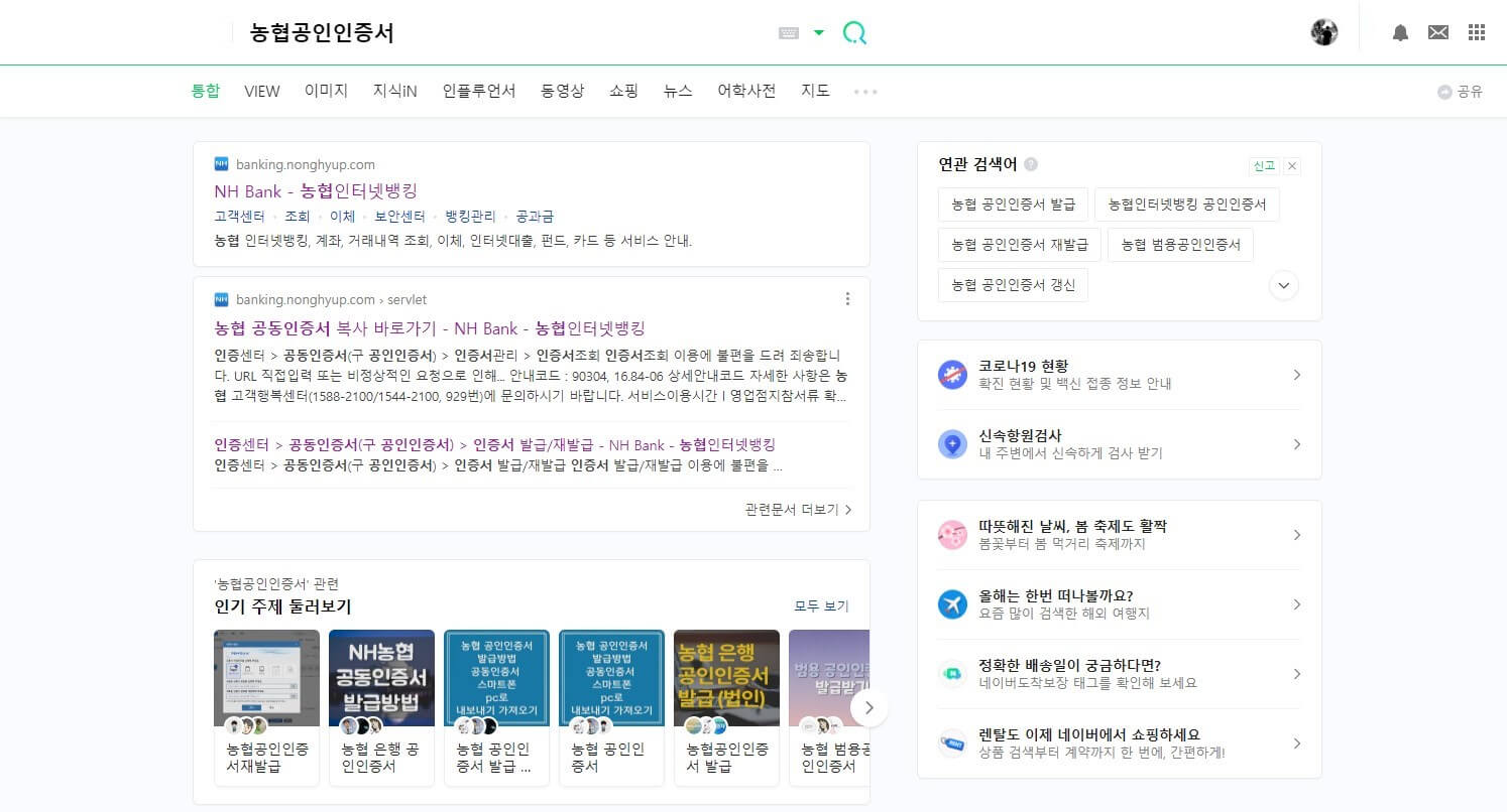 검색 창 ‘농협공인인증서’ 찾다
