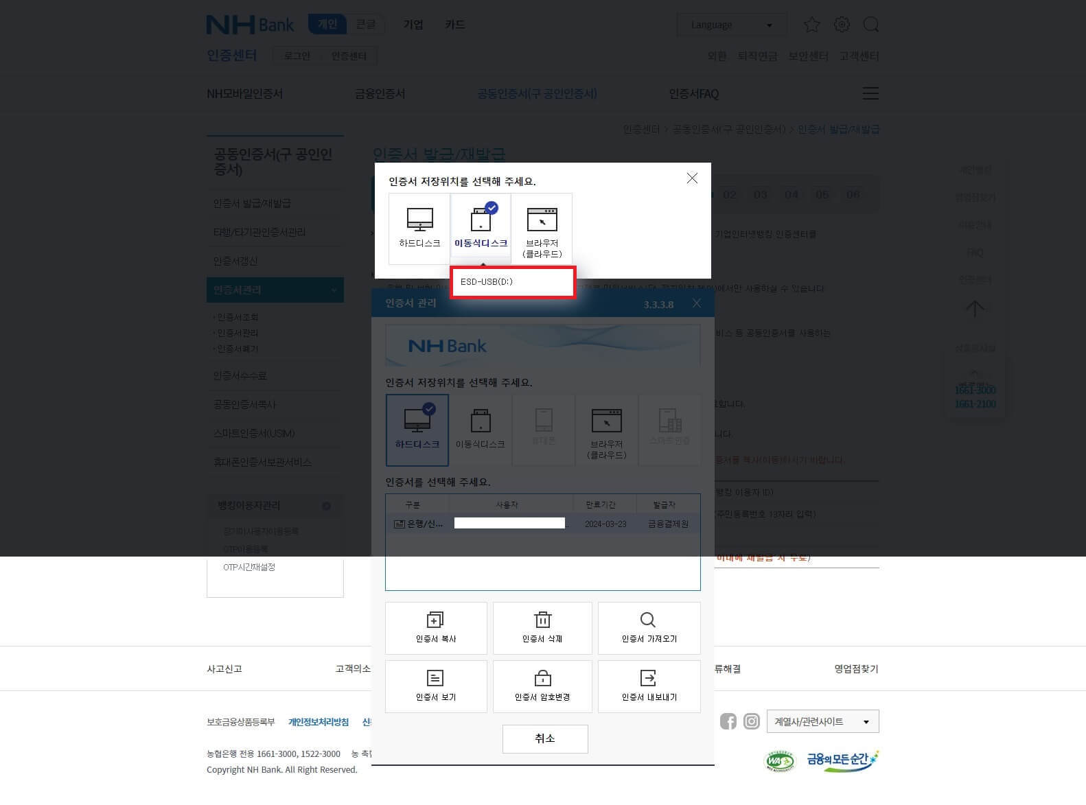 농협공인인증서(+ USB 저장장치) 발급 및 재발급 방법