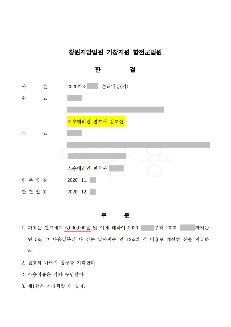 예를 들어 일반적으로 대여한 돈을 약속대로 받지 못한 경우 이를 종용하거나 우체국에서 우편 안건의 내용을 서면으로 입증하는 제도를 이용해 청구하게 되며, 만약 채무자 측이 이를 지속적으로 무시하거나 빌린 사실을 부인하면 대여금 반환 청구 소송으로 이어진다고 했습니다. 사례에서 E씨는 금전을 빌린 J씨가 상환할 생각이 없었기 때문에 보여주고 돌려줄 것을 요청했지만 일부 갚고 남은 금액에 관해서는 투자금이라고 주장하며 갈등이 일어났다고 말했습니다. E씨는 변호인에게 안건을 의뢰해 금전거래가 있었는지 검증하기 위해 당시 대화목록 등을 토대로 빌려준 금액을 밝히며 아직 해결되지 않은 잔금과 이자 전액을 받을 수 있도록 적극 주장했고 법원은 손해배상청구소송 변호인의 주장을 받아들여 돌려받지 못한 금액과 법정 최고이율로 산정된 이자지급, 연체에 따른 손해배상 지급에 대해 명령했습니다.