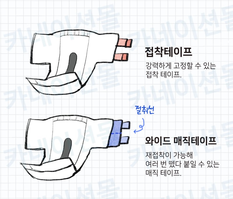 성인용 기저귀란?화장실에 직접 가기 어려운 어른들을 위해 만들어진 기저귀.와상환자분들, 치매환자분들, 뇌졸중 환자분들 등 혼자 화장실에 가기 어려운 분들이 사용한다.산모들이 출산 후 쓰거나 생리대 대신 사용, 재활할 때 쓰는 성인용 기저귀도 있다.성인용 기저귀의 종류는?외기저귀와 내기저귀, 팬티형 기저귀를 크게 세 종류로 구분할 수 있다.